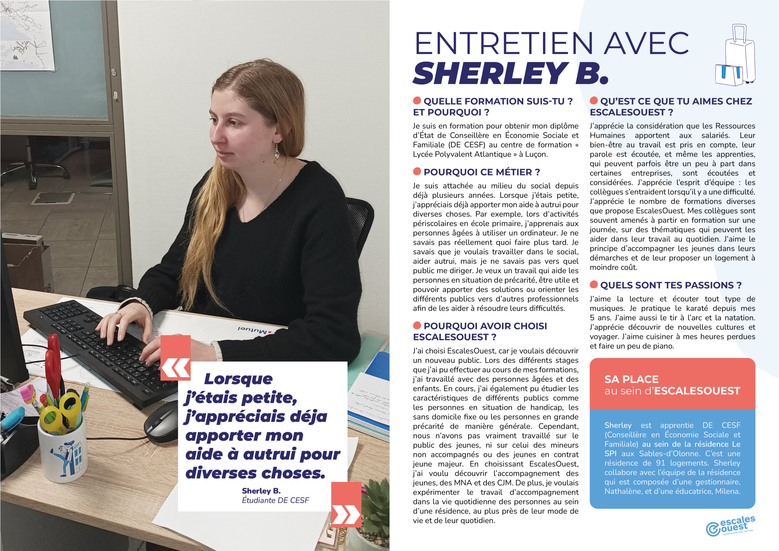 Nous vous proposons le portrait de Selma B., qui est apprentie en DE CESF (Conseillère en Economie Sociale et Familiale), au sein de notre résidence le SPI aux Sables d’Olonne.